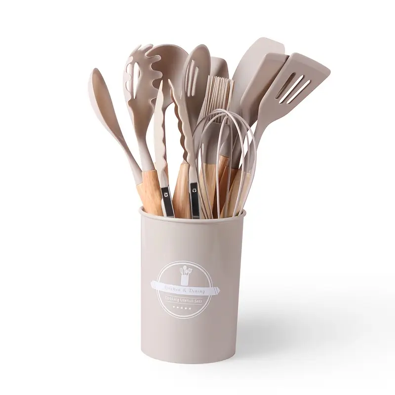 12pcs, Non-Stick Silicone Kitchen Utensil Set with Wooden Handles